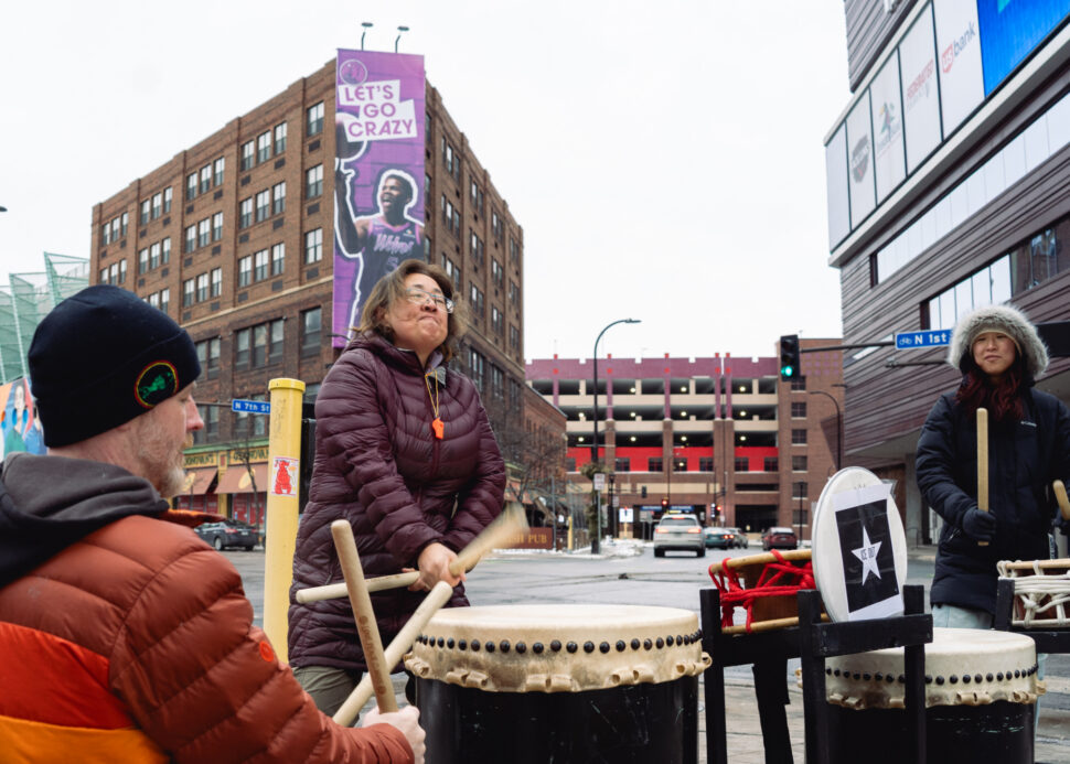 Instead of taking to the stage, some artists have taken to the street. That is how Jennifer Weir, founding executive director of TaikoArts Midwest, found herself outside one day in negative 15 degree weather, playing taiko drums in the middle of an anti-ICE protest in downtown Minneapolis. “We’re at a corner drumming and then suddenly, another person with a snare drum pulls up and starts jamming with us. And then a person with a soprano saxophone is with us wailing along. And then a person with a Native drum comes, and then somebody starts dancing,” exclaims Weir. “It becomes this, like, pop-up community … And it was so great, because those kinds of things carry you through all the news of all the horrible things that are happening to everybody.”
