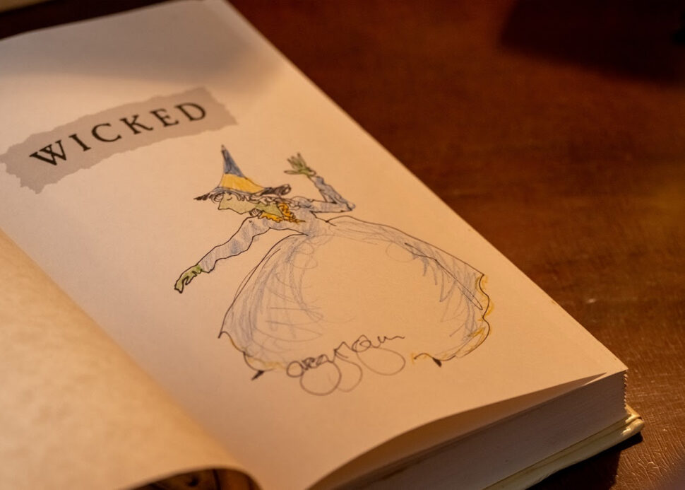 Among the highlights are a signed and sketched first edition, first printing of Wicked from author Gregory Maguire’s personal collection, as well as signed books from Marc Shaiman (Hairspray, Smash), Charles Strouse (Annie), Wiley Hausam (agent of Jonathan Larson), Michael Riedel (New York Post), Gretchen Dykstra (founding president of the Times Square Alliance), Paul Gemignani (Pacific Overtures, Sweeney Todd), Playbill's Margaret Hall, and the puppeteers from the current Off-Broadway production of Little Shop of Horrors (Jonothon Lyons, Teddy Yudain, Noel MacNeal, Weston Chandler Long).