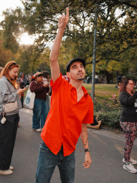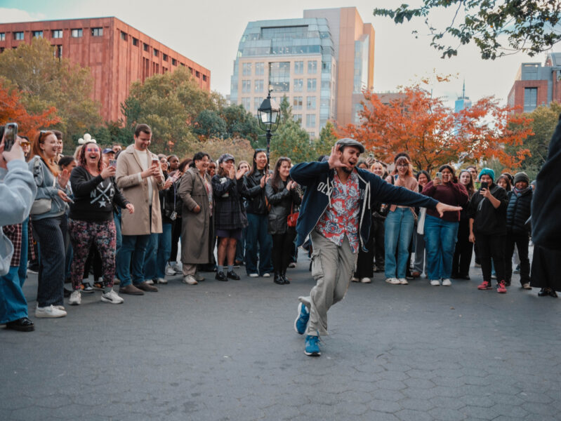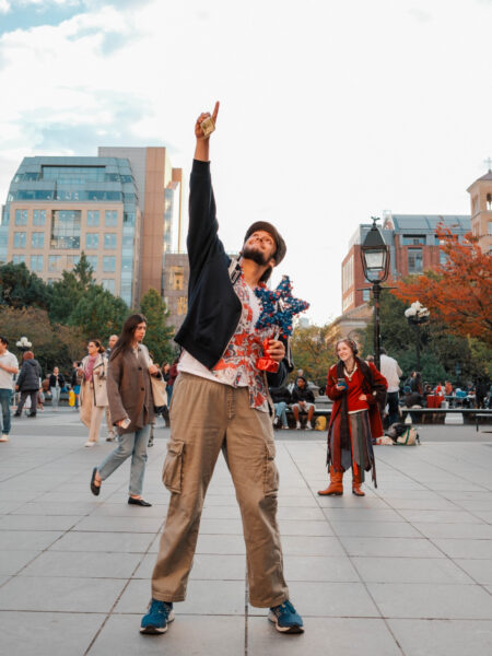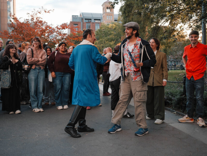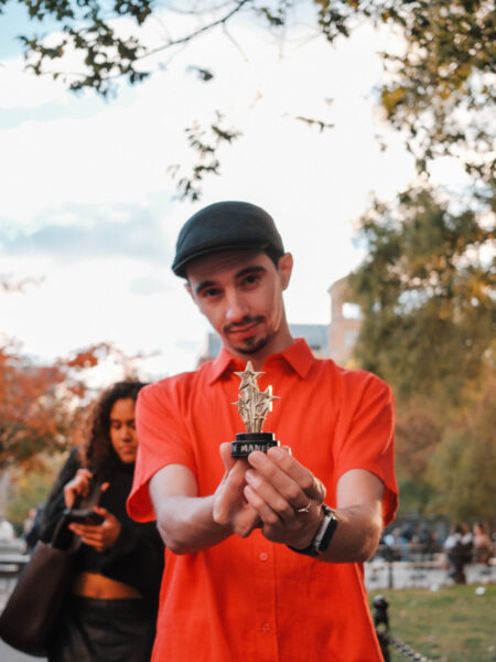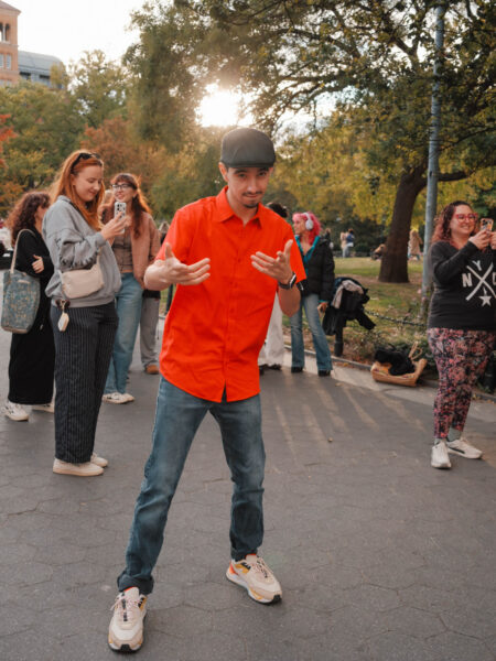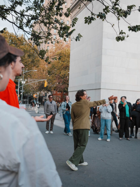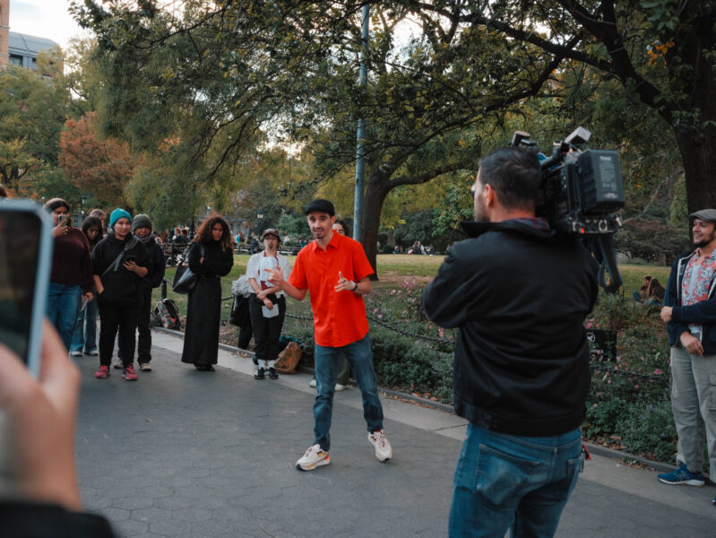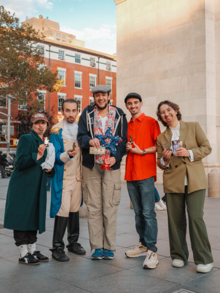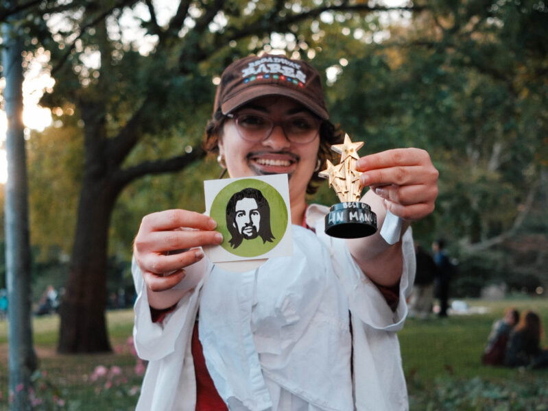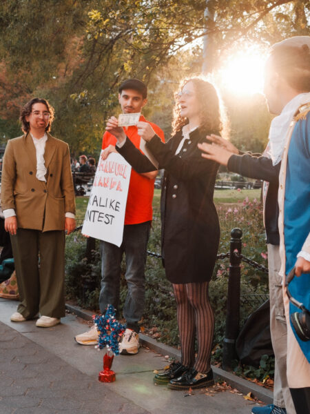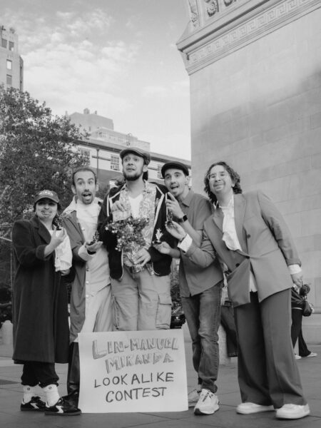 “You could’ve been anywhere in the world tonight, but you’re here with us at the Lin-Manuel Miranda Look-Alike Contest,” said Cate Bates on a brisk, but sunny, afternoon in Washington Square Park in New York City. That's right, on a random autumn Thursday, October 23, a few dozen people gathered in the park for a Lin-Manuel Miranda Look-Alike Contest. The winner got a trophy and a crisp $10 bill.