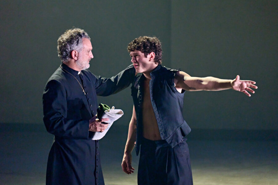 Robert Icke directs a cast led by Sink (John Proctor is the Villain, Stranger Things) as Juliet and Jupe (Hamnet) as Romeo, with Jamie Ankrah (Christmas Day) as Peter, Dylan Corbett-Bader (King Lear) as Benvolio, Eden Epstein (Mary Page Marlowe) as Lady Capulet, Alex Felton (All's Well That Ends Well) as Abraham, Clark Gregg (Good Night, and Good Luck) as Capulet, Ada Grey (Chicago Fire) as First Servant, Kasper Hilton-Hille (Troilus & Cressida) as Friar John and Mercutio, Aruna Jalloh (For Black Boys Who Have Considered Suicide When The Hue Gets Too Heavy) as Tybalt, John Marquez (Doc Martin) as Friar Laurence, Caroline Moroney (All's Well That Ends Well) as Second Servant, Clare Perkins (Player Kings) as Nurse, David Shelley (Player Kings) as Apothecary and Montague, Lewis Shepherd (Dear England) as Paris, and Alexander Uzoka (Macbeth) as Gregory. Casting is by Julia Horan and Jim Carnahan.
