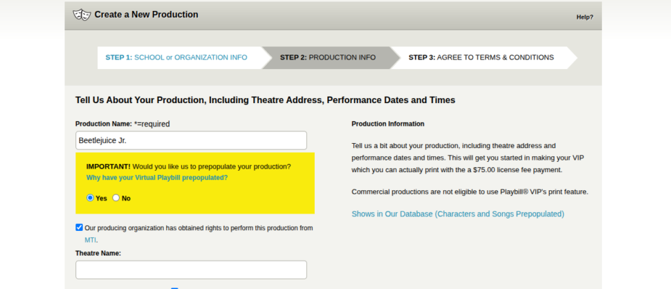For musicals, Playbill Express auto-populates all official song titles, saving you the headache of cross-referencing your script with your Playbill draft.