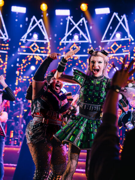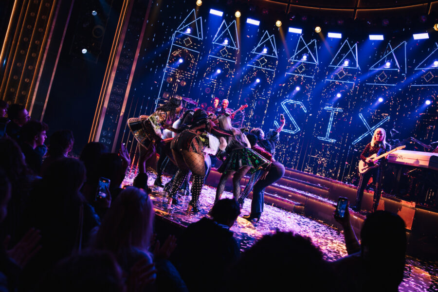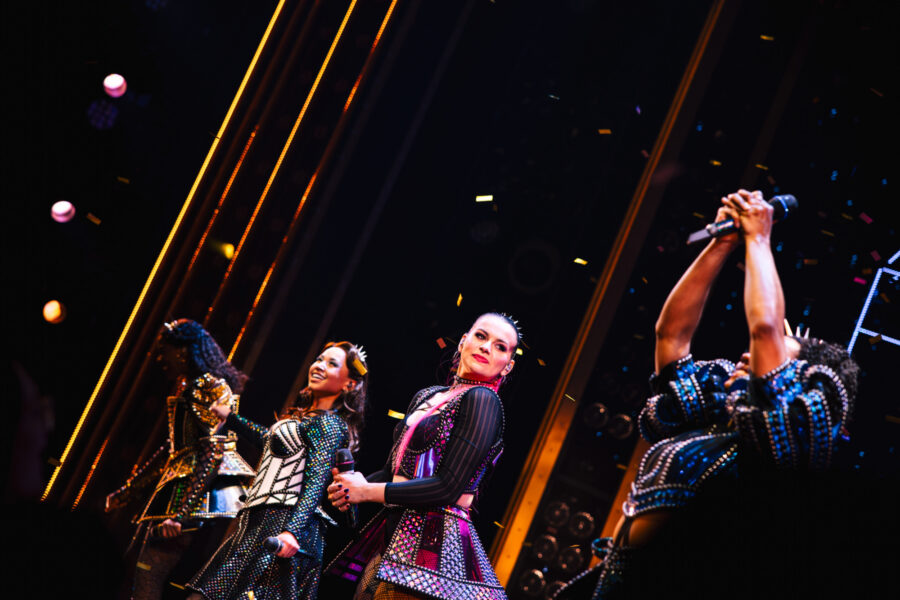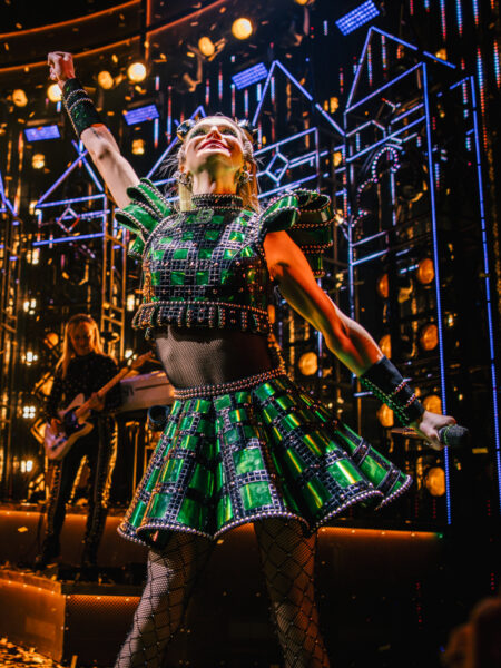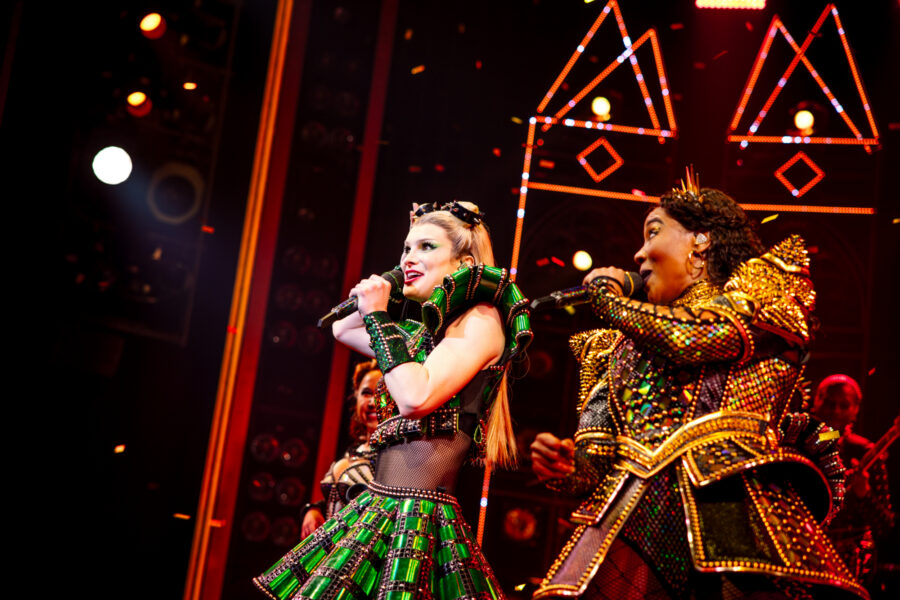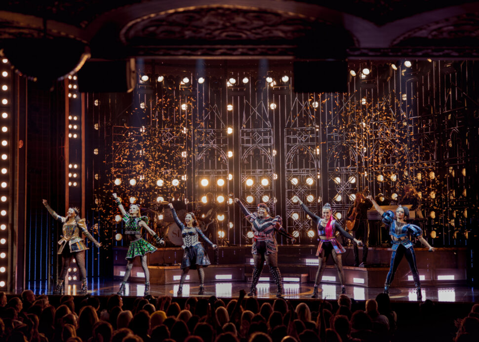 Six—about the six wives of Henry VIII—celebrated its official Broadway opening October 3, 2021 at the Lena Horne Theatre. Marlow and Moss’ musical is co-directed by Moss and Jamie Armitage and features choreography by Carrie-Anne Ingrouille, scenic design by Emma Bailey, costume design by Gabriella Slade, lighting design by Tim Deiling, and sound design by Paul Gatehouse.