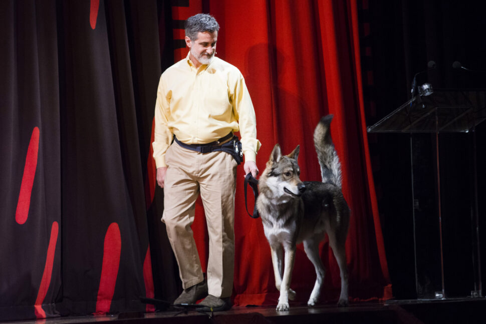 “A dog in The Crucible?! Now I’ve seen everything!” Yes, the 2016 Broadway revival of The Crucible added a new element to the Arthur Miller play: a dog. Well, only technically. The dog in question—Luchta, a Tamaskan (at the time the only of his kind in North America)—looked much closer to an honest-to-God wolf. Director Ivo van Hove used the animal as an expression of the animal-like witch hunt on display in the plot of the classic, having Luchta (with some help from Broadway animal trainer extraordinaire Bill Berloni) kick off the second act by sauntering to downstage center and staring out menacingly into the audience before scampering off stage. Van Hove also wisely kept the stunt a secret—the Playbill had no billing for the dog. Instead audiences received Luchta’s credits on a loose piece of paper as they left the theatre after the performance. I always love seeing dogs in shows, but this was something else; eerie, unnerving, downright scary. It was an especially effective coup de théâtre. That Luchta was actually, by all reports, a friendly and fully domesticated dog (rather than a scary wolf ready to eat my face) was beside the point. Luchta was an expert at playing his role, and it got your attention for this already tense play’s second act. I’ll never forget it! —Logan Culwell-Block